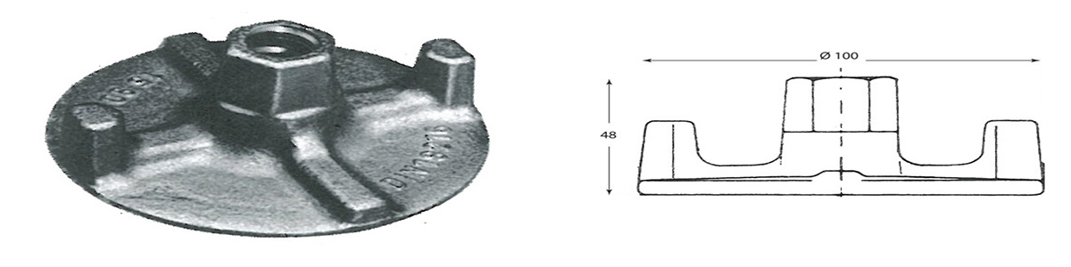 Steel Quality: 9 SMnPb8k with galvanized moveable plate 0 max. 80mm, concrete overlap 55mm